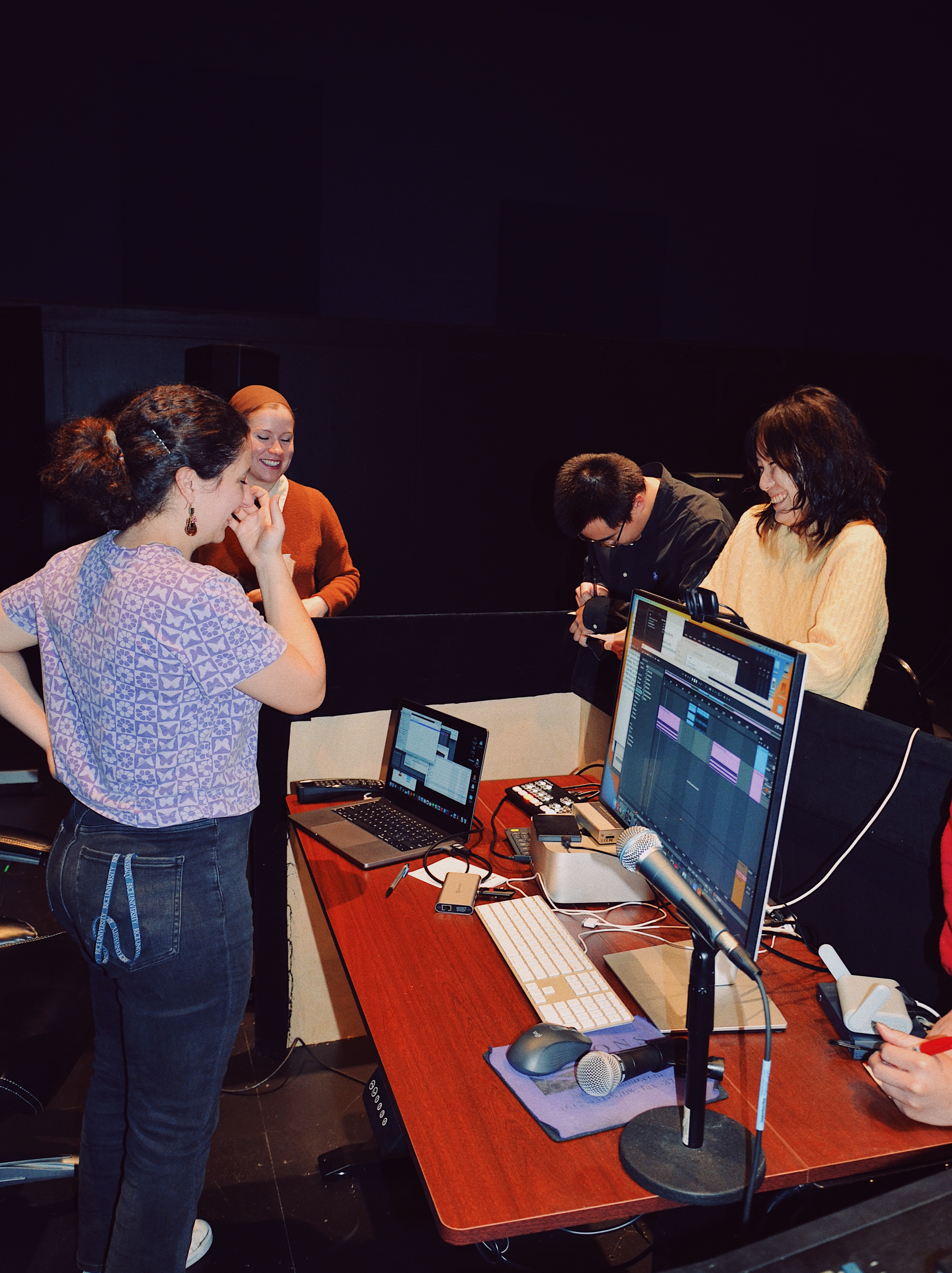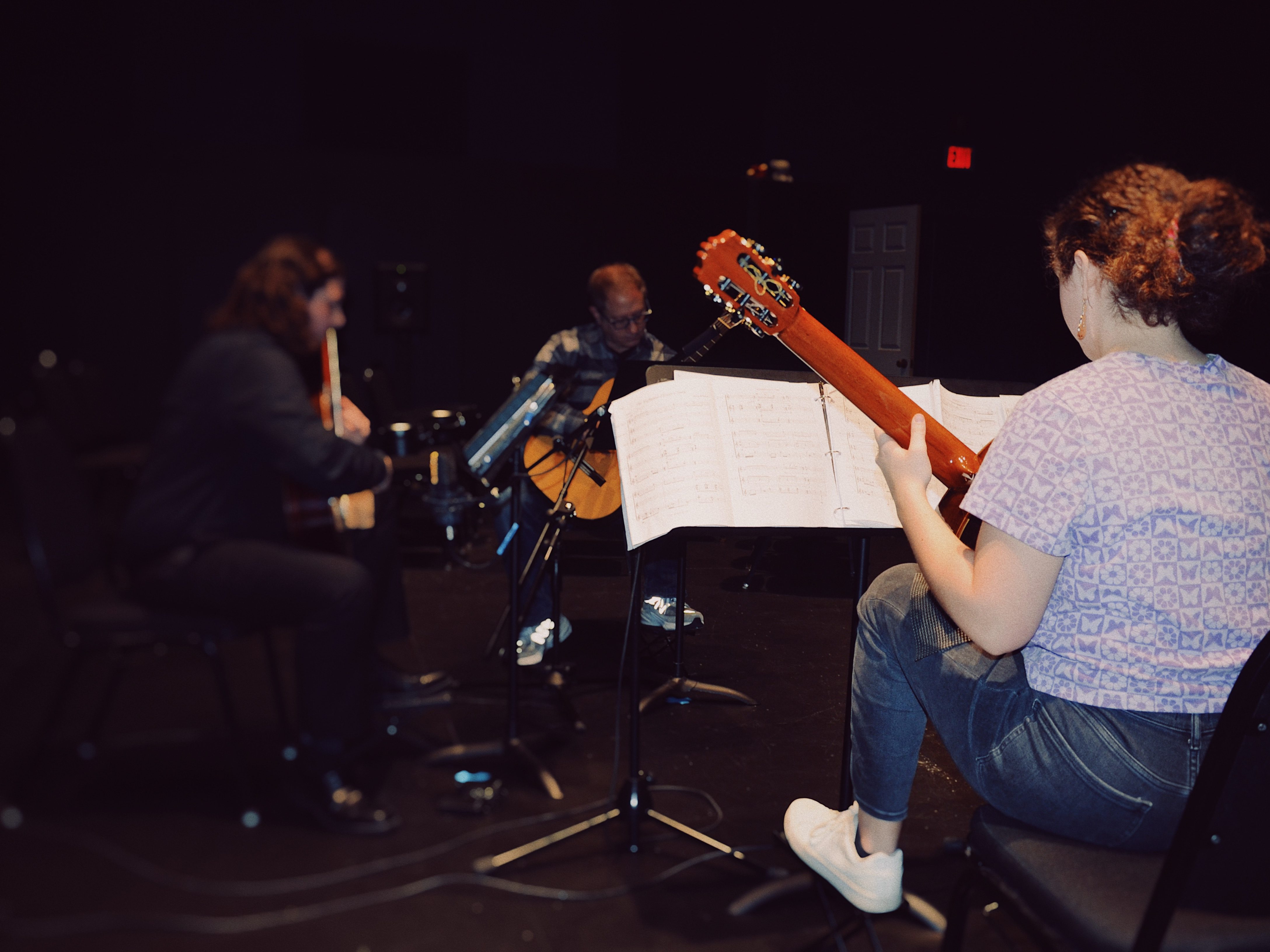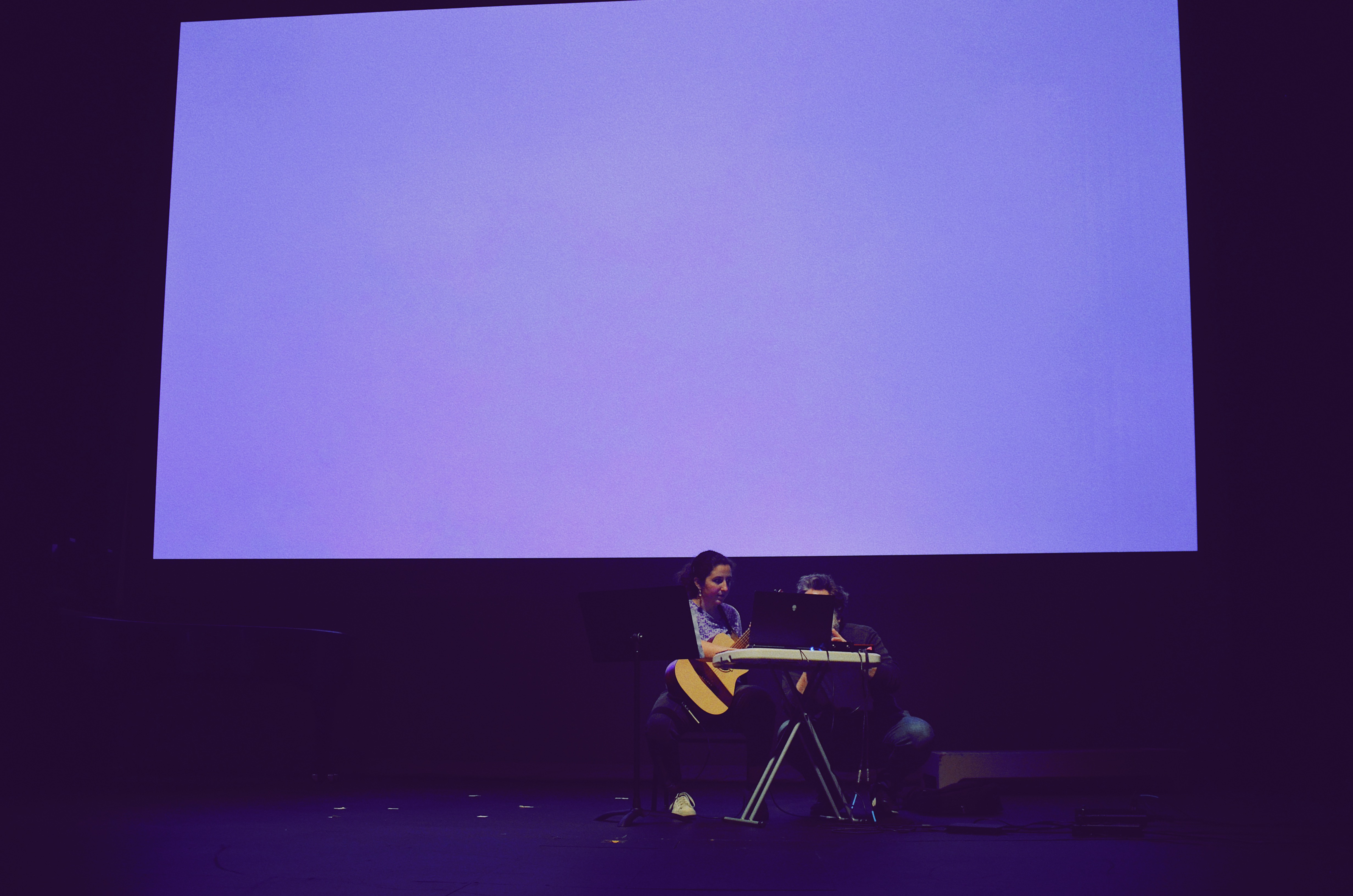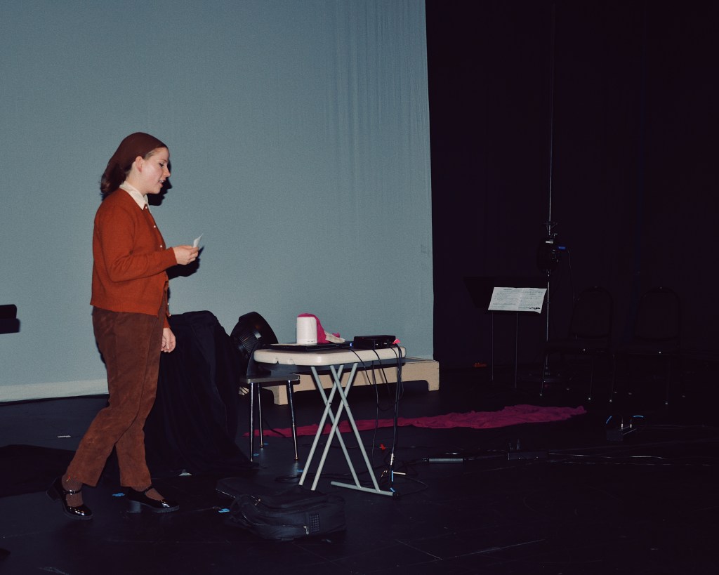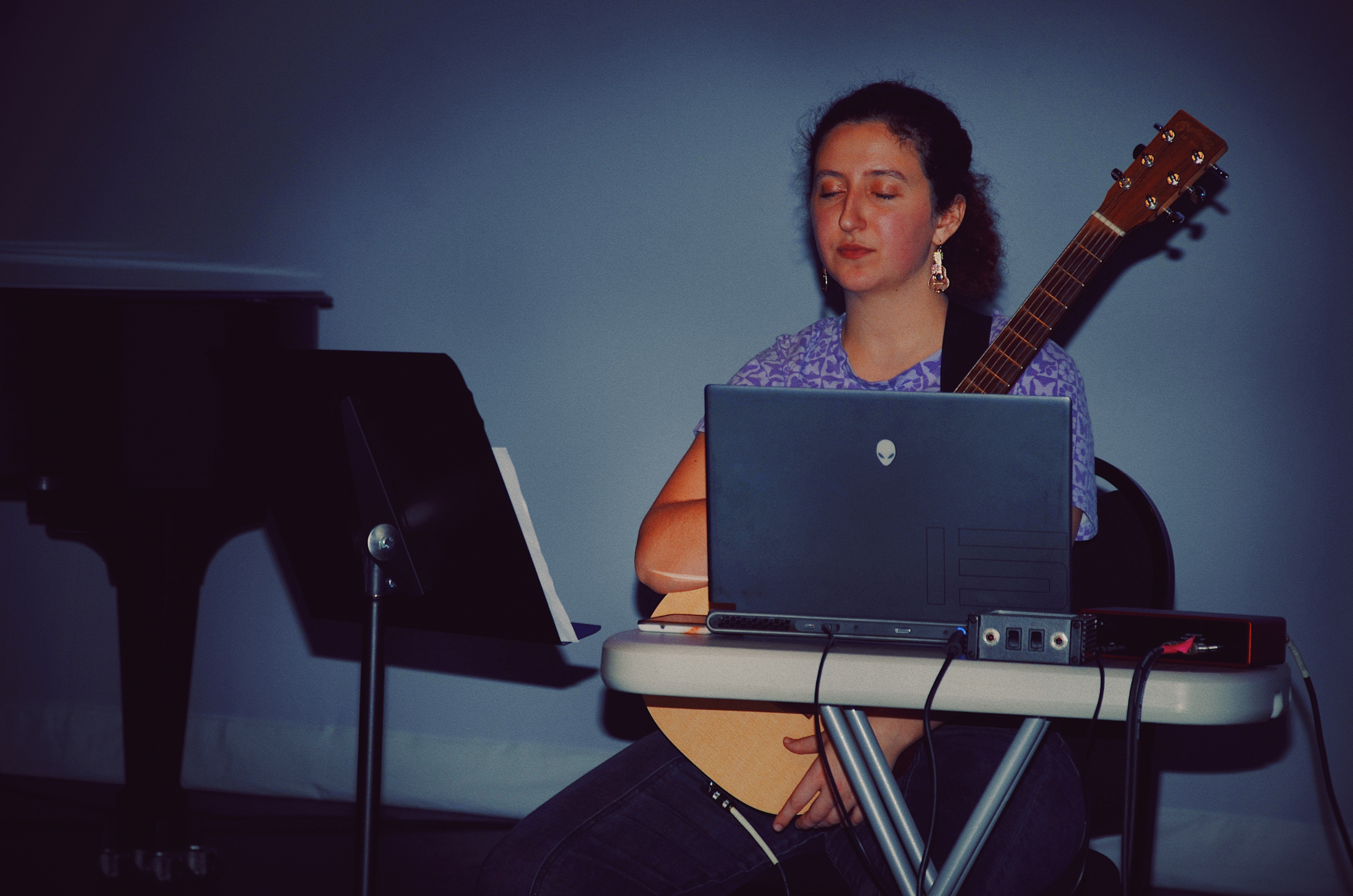Once Joanna’s team ended the exhibit time, they directed the audience inside to the multimedia music portion of the evening, where each piece on the program included a combination of surround-sound mixing, calming drones, video+fixed tracks, or acoustic music to help create a space of unhurried reflection.